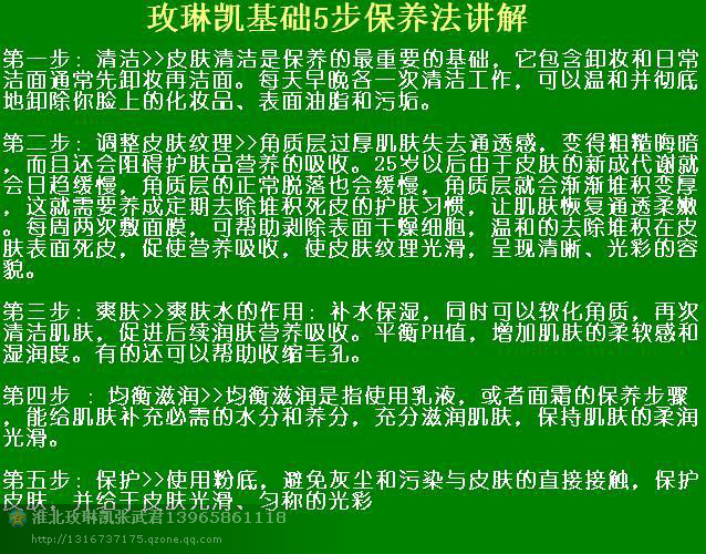 亲爱的们~皮肤日常护理很简单,每天只需要花上几分钟的时间,就能令您的皮肤长久的保持光滑、柔嫩、动人。下面我给大家介绍一下玫琳凯公司已在全世界40多个国家和地区流传48年非常经典的基础五步护肤保养法,只要您坚持科学使用,相信未来的5天、5个月、5年甚至10年,一定会让您的皮肤和同龄人相比年轻很多。